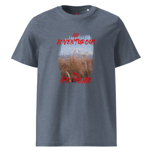 ‘Go Adventurous or Go Home’ Unisex Organic Cotton T-Shirt – Mountain Grassland Design