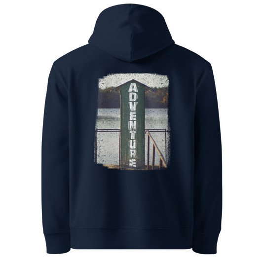 ‘Adventure’ Unisex Organic Cotton Hoodie – Lake & Forest Design