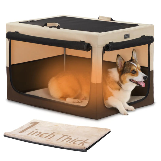 Collapsible Dog Crate Dog Crate Travel - 35.5 Inch Lightweight Roomy Easy to Set Up Portable Pop Up Dog Carrier with Thick Mat Sturdy Portable Dog Crate Grey